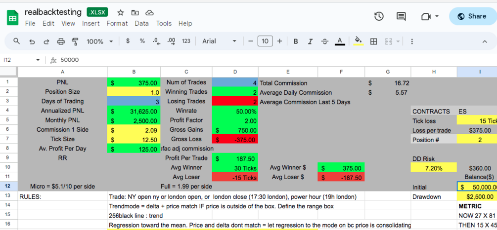 Backtesting spreadsheet (excel) optimized for futures analytica (ES) and Oil (CL).